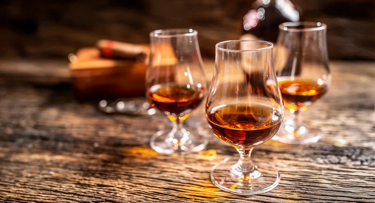 Discreet molasses aromas are framed by powerful wood spice and the sweet hint of prunes, sultanas and dark chocolate. The Dominican rum holds vanilla and caramel, sweet spices and cocoa. Creamy on the palate, full-bodied and long on the finish.